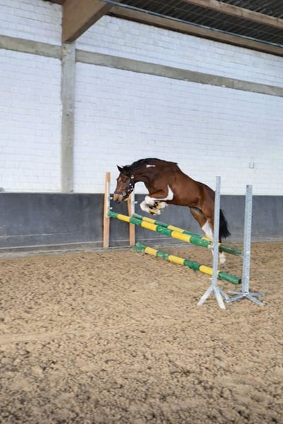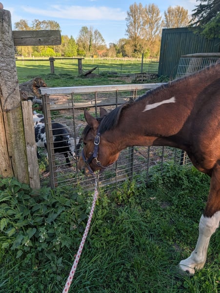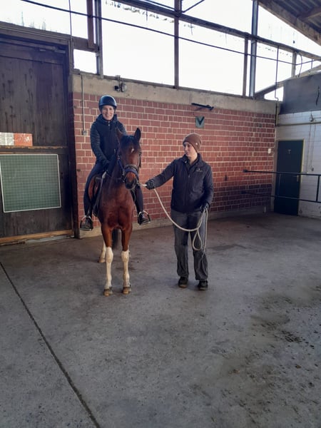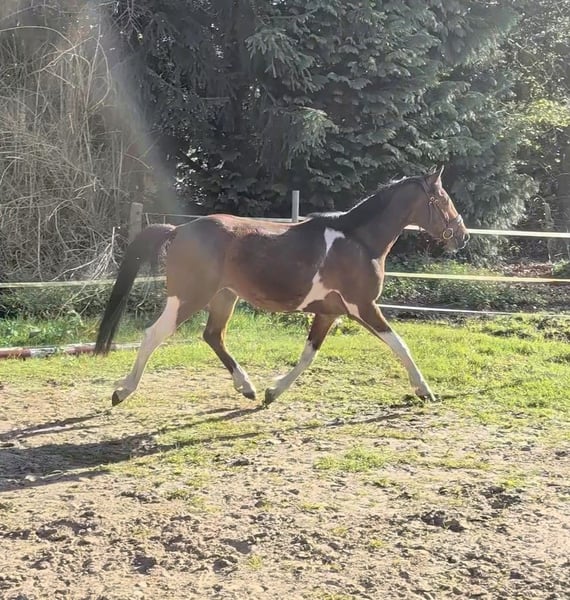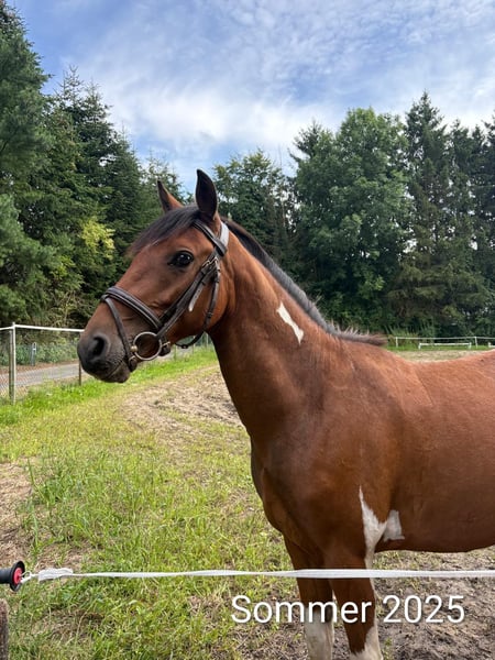 Aus gesundheitlichen und zeitlichen Gründen müssen wir uns leider von unserem Pony Nemo trennen. Wir haben ihn als Jährling als Beisteller von einem befreundeten Züchter gekauft. Seitdem hat er uns viel Freude bereitet und ist nun bereit, seinen Weg als Reit- oder Fahrpony zu gehen. Im Herbst durfte er schon erste Erfahrungen vor der Kutsche und im Winter unter dem Sattel sammeln. Er wurde zusammen mit einem erfahrenen Fahrpferd angespannt und ist zum Schluss auch schon ein paar Mal kurze Strecken einspännig gelaufen. Beides hat er für sein junges Alter artig absolviert. Danach haben wir ihn etwas an Sattel und Reitergewicht gewöhnt, auch das lief ohne größere Probleme ab und er konnte schon unter dem Sattel an der Longe etwas im Trab geritten werden. Danach haben wir ihm erstmal wieder eine Pause gegönnt, um sich körperlich weiter entwickelt zu können. Aufgrund der längeren Pause seit der Arbeitsphase verkaufen wir ihn als roh. Momentan steht er noch voll in der Entwicklung und ist auch noch etwas überbaut. Sein Stockmaß beträgt zur Zeit ca 144 cm, wir schätzen sein Endmaß auf 146/147 cm. Nemo ist sehr verträglich mit anderen Pferden und kennt zudem Hühner, Ziegen und Hunde. Er kennt Autos und Fahrräder, nur bei Landmaschinen ist er noch etwas unsicher, bleibt aber immer händelbar und vertraut seiner Bezugsperson. Bei fremden Menschen ist er erst skeptisch, fasst aber schnell Vertrauen und genießt die Aufmerksamkeit. Er ist keine Schlaftablette, sondern ist ein Pony, das gearbeitet werden möchte und das können wir ihm zur Zeit leider nicht bieten. Besonders hervorzuheben sind seine raumgreifenden GGA, seine Ausdauer und Springtalent. Beim Freispringen zeigte er sich von Anfang an begeistert und glänzte mit Übersicht und Vermögen. Wir können ihn uns gut im Fahrsport oder in der Vielseitigkeit vorstellen, da er schnell lernt und mitdenkt. Mehr Infos und Videos gerne auch per WhatsApp.