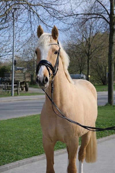 Kumpeltyp mit Charme und Schmelz! Zum Verkauf steht ein 3-jähriger Deutscher Reitpony Wallach in attraktiver Palomino-Farbe mit einem aktuellen Stockmaß von 1,44 m. Er ist angeritten und zeigt sich dabei sehr brav, ausgeglichen und stets bemüht, seinem Reiter alles recht zu machen. Der junge Wallach stammt direkt vom Züchter und überzeugt mit einem ehrlichen, klaren Charakter sowie einer angenehmen Arbeitseinstellung. Er bringt drei gute Grundgangarten mit und steht sehr schön im Ponytyp mit einem ausdrucksstarken, maskulinen Erscheinungsbild. Ein Pony, das durch seine Rittigkeit und seine unkomplizierte Art sowohl für den Sport als auch für den Freizeitbereich beste Voraussetzungen mitbringt. Abstammend von Dating AT aus einer FS Mr. Right x Don’t Worry Mutterlinie, vereint er bewährte Genetik mit vielversprechender Perspektive. Seine Mutter war hocherfolgreich in Jungpferdeprüfungen, qualifiziert für das Bundeschampionat und ist aktuell weiterhin erfolgreich unter ihrer jungen Besitzerin unterwegs. Aktuelle Röntgenbilder liegen vor und sind ohne Befund. Ein sympathischer junger Wallach, der mit seiner Einstellung und seinem Potenzial viel Freude für die weitere Ausbildung verspricht. Bei Interesse freuen wir uns über eine Kontaktaufnahme.