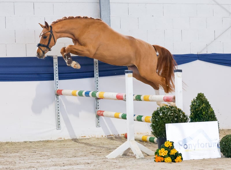 In unserer Kollektion stehen streng selektierte Youngster f�r alle Anspr�che: Ausbildungs-, Zucht- und Kinderponys Hier gelangen Sie zur Gesamtkollektion: https://ponyforum.auction Einen absoluten Hochkaräter für den Parcours präsentiere wir mit Mein Märchenprinz! Der dreijährige Wallach zeigt schon beim Freilaufen mit außergewöhnlicher Bewegungsqualität, dass hier ein Sportler vor uns steht. Setzt er dann aber in der Freispringreihe zum Flug an, verschlägt es einem die Sprache! Mit ganz viel Vermögen und Übersicht absolviert er jede Aufgabe, er basculiert hervorragend und seine fokussierte Arbeitseinstellung ist beispielhaft. Das bedeutende Doppeltalent scheint er vom Vater geerbt zu haben: Mescal. Deutschlands einziger Doppelbundeschampion im Springen, der es im Anschluss im Dressurviereck bis in die S-Klasse schaffte! Ein Supertalent wartet auf Superförderung. Direkt vom Züchter.