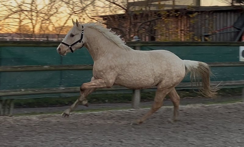 Zum Verkauf steht dieser auffällige 3-jährige Wallach. „Steverheides Day-Man“ stammt ab von FS Day by Day (FS Don’t Worry x Champion de Luxe x Dornik B) aus einer Verbandsprämienstute von Dressman IV x Golden Atreju. Er wurde im Februar 2025 kastriert und im November 2025 mit 1,48 m gemessen. Selbstverständlich ist er geimpft und regelmäßig entwurmt. Schmiede- und verladefromm. Ein Pony mit viel Qualität, das sich sehr interessant für die weitere Ausbildung zeigt. Sicherlich auch interessant für die Westfalen-Woche bei entsprechender Ausbildung. Es liegen keine Röntgenbilder vor.