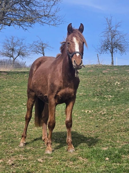 Er trägt aber genauso kleinere Kinder durch z.B,Reitabzeichen vom Wesen also auch ein ganz toller Ponyhengst mit Doppelveranlagung