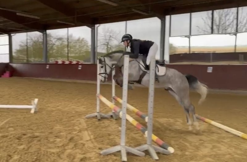 Unser 4-jähriger Ponywallach Alfi ist ein äußerst menschenbezogenes und freundliches Pony, das aktuell am Anfang seiner Ausbildung steht. Im täglichen Umgang zeigt er sich immer brav, unkompliziert und sehr angenehm im Handling. Alfi verfügt über sehr gute Grundgangarten. Am Sprung überzeugt er durch Mut, Übersicht und ein bereits erkennbares Vermögen, was ihn besonders für eine sportliche Weiterentwicklung interessant macht. Wir können Ihn uns sehr gut in Dressur sowohl als auch im Parcours vorstellen. Aufgrund seines Alters und Ausbildungsstandes ist er aktuell noch kein Anfängerpony, bietet jedoch die ideale Basis für Reiter, die sich ein Pony mit Perspektive selbst weiter ausbilden möchten. Wer ein ehrliches, talentiertes Nachwuchspony mit viel Potenzial für die Zukunft sucht, wird mit Alfi einen passenden Partner finden.