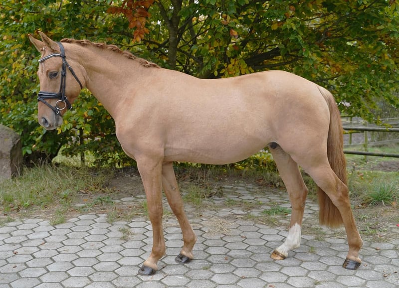 ⭐️⭐️Crunchy⭐️⭐️ Magnifique hongre de poney allemand, né en 2021. Avec son joli pelage fauve et une taille au garrot de 147 cm, il ne passe pas inaperçu. Ce poney est parfaitement formé en dressage et fait preuve de beaucoup de talent ainsi que d'une attitude de base agréable. Il est amical, attentif et facile à manipuler, ce qui le rend intéressant aussi bien pour des cavaliers expérimentés que pour des jeunes cavaliers ambitieux. Pour toute question ou pour organiser une visite, n'hésitez pas à me contacter. Des essais en main et à cheval sont possibles sur rendez-vous.