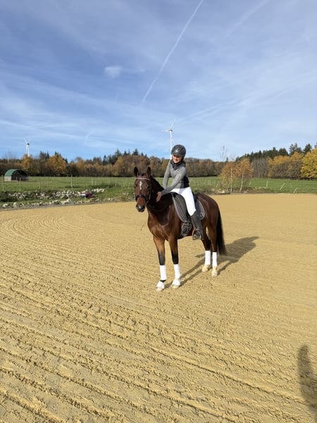 🌟 Poney de jeune taille XXL de rêve 🌟 Découvrez Burni, notre hongre de 3 ans, originaire d’Allemagne, de race Deutsches Reitpony, mesurant 1,51 m. Il est déjà polyvalent dans son entraînement, monté et en attelage. Burni se distingue par ses excellentes allures de base et son tempérament exceptionnel, faisant de lui un partenaire idéal. Des vidéos sont disponibles. Intéressé ? N'hésitez pas à me contacter pour plus d'informations par téléphone au +49 176 34635813. 🐴💫