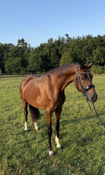 🌟 Droom XXL-pony in de dop 🌟 Ontdek Burni, onze 3-jarige Duitse Reitponyhengst met een hoogte van 1,51 m. Hij is al veelzijdig opgeleid en zowel bereden als aangespannen. Burni overtuigt met zijn uitstekende basisgangen en een geweldig karakter, waardoor hij een ideale partner is. Video's beschikbaar. Geïnteresseerd? Neem gerust contact met ons op voor meer informatie via telefoon op +49 176 34635813. 🐴💫