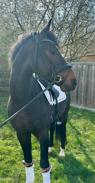 Nemo is a four-year-old XXL-sized riding pony stallion, currently approximately 15.2 hands tall, with promising potential for dressage. His sire, Neverland, is a proven sire of high-quality dressage bloodlines, and his dam, by Timberland, was awarded the Verband premium for her sporting achievements. His full brother, now based in Australia, was licensed as a premium stallion. Nemo is a well-mannered young stallion who has grown up healthy in a large herd. Due to time constraints, he was only started under saddle at the beginning of this year. He demonstrates a willing attitude to learn and has very good basic gaits; however, he is still at the beginning of his training and therefore not suitable for beginners or children at this stage. He is available for a viewing at any time, located in Hamm, Westphalia. Directly from the breeder. On request, he can be backed. A health certificate from the veterinarian, indicating no findings, is available. Price is negotiable, but he is not a bargain.