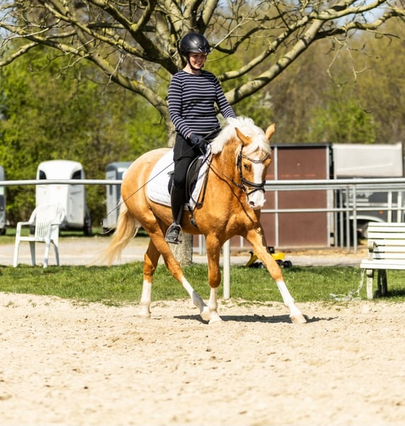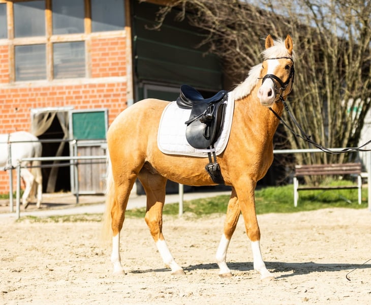 For Sale: German Riding Pony Gelding A stunning German Riding Pony gelding born in 2022. With his striking palomino coat and a height of 14.9 hh, he is not only a real eye-catcher but also a talented partner for dressage and jumping. This young gelding already shows promising potential in dressage training and has the ability to develop further in this discipline. He is well-behaved, socialized, and suitable for both experienced riders and ambitious beginners looking to grow together with him. He is healthy, regularly vaccinated and dewormed. If you are interested or have any questions, please feel free to contact me. Don’t miss this opportunity to acquire such a promising young sport horse!