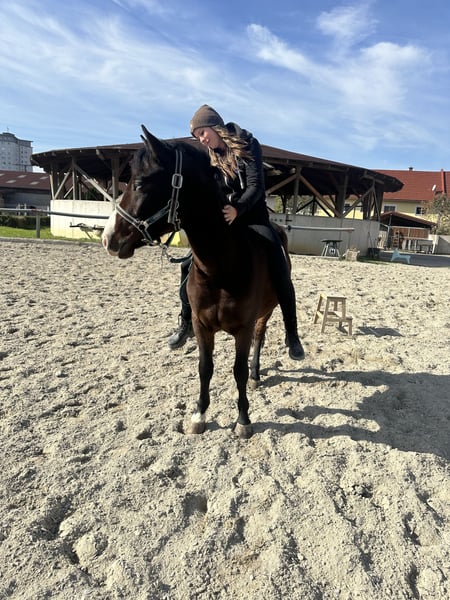 Verkaufe deutsches Reitpony – ideal für Freizeit und Hobby! Ich verkaufe meinen Ponywallach Nacho. Er ist beim Reiten sehr brav und zeigt sich äußerst zuverlässig im Gelände – sowohl alleine als auch in der Gruppe. Nacho springt gerne und arbeitet auch in der Dressur sehr brav mit. Dank seiner Größe deckt er sehr gut ab, sodass auch etwas größere Reiterinnen und Reiter bequem auf ihm sitzen können (die Reiterin auf dem Foto ist ca. 1,65 m groß). Im Umgang ist Nacho manchmal etwas frech, aber immer motiviert, aufmerksam und begeistert bei der Arbeit. Er liebt es, im Mittelpunkt zu stehen und freut sich über viel Zuwendung. Er ist kein reines Anfänger- oder Kinderpony, sondern eher ein Pony, das eine sichere, führende Hand braucht – dann ist er ein absoluter Schatz! 💛
