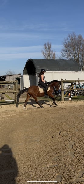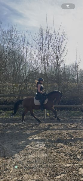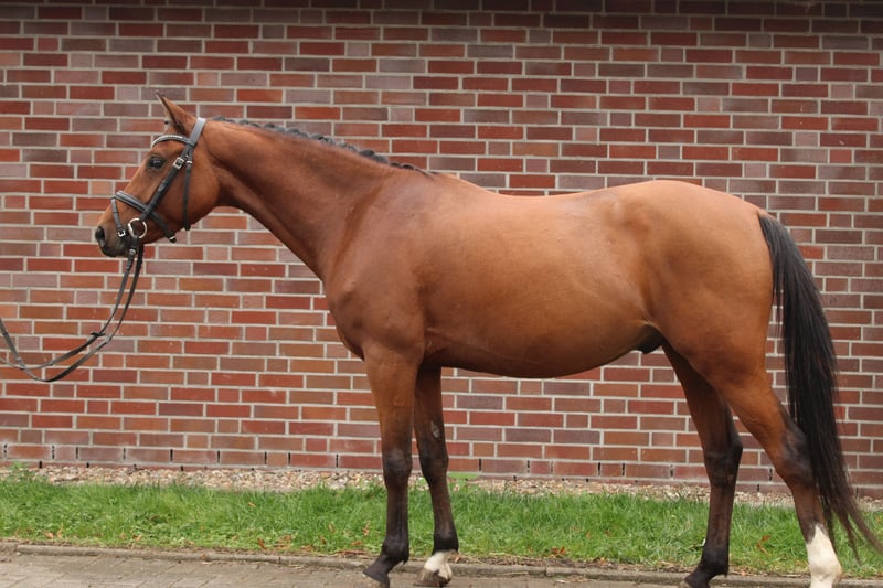 For sale: a promising German Riding Pony gelding, born in 2021. The perfect partner for those seeking a reliable and talented horse for competitive riding. He is easy to ride, suitable even for children to sit on and follow after. His appearance and temperament make him appealing both to ambitious leisure riders and for show jumping or dressage competitions. He has a solid, age-appropriate basic training in dressage and small jumps, and his eagerness to learn sets him apart. TÜV valid until 2025, including back x-ray available. Videos of him being ridden with a child can be sent upon request (dressage + jumping). He is familiar with road traffic, can be ridden without a saddle, and more.