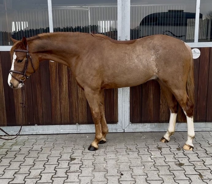 Zum Verkauf steht ein wunderschöner deutscher Reitpony-Wallach, geboren im Jahr 2021. Der charmante Fuchs besticht durch sein freundliches Wesen und seine beeindruckende Erscheinung. Mit einem Stockmaß von 146 cm ist er perfekt für ambitionierte Reiter, die ein zuverlässiges und talentiertes Pony suchen. Der Wallach ist lernwillig, hat schöne Grundgangarten, macht einen guten Sprung und zeigt viel Potenzial für den Turnierreitsport. Bei Interesse und für weitere Informationen stehe ich gerne zur Verfügung .