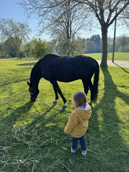 Verkaufe schweren Herzens meine Deutsches Reitpony aufgrund beruflicher Umstellung und mangelnder Zeit. 2020 geboren, Rappe, 147,5 cm groß. War schon auf dem Turnier und konnte sich in einer Reitpferde mit 8,1 platziert und ist Dressurpony A hochplatziert. Sicherlich ein Pony mit sehr guter Bewegung. Würde mich trotzdem freuen wenn er Familienpony wird und kein FEI Pony... Ganz lieber Charakter, allerdings fleißiges und sensibles Pony. Geht alleine ausreiten und hat auch schon einen ersten kleinen Sprung gemacht, hier aber noch nicht weiter gefördert obwohl er viel spass dran hat. Gesund, keine Unarten. Schmiede und Verladefromm. In der Zukunft sicherlich ein Kinderpony, braucht aber noch Ausbildung. Bitte nur an Menschen unter 60 kg und die wirklich ein Pony suchen. Bitte nicht melden wenn Sie einfach nur Videos gucken wollen. :) TÜV von 2024 war gut. Ein neuer Tüv kann natürlich vom Käufer durchgeführt werden. Kein Notverkauf, nur in ganz liebe Hände!