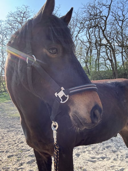 Schweren Herzens verkaufe ich aus persönlichen, privaten Gründen meinen 5-jährigen Deutschen Reitpony-Wallach „Bismarck“ mit einem Stockmaß von ca. 150 cm. Er wurde im letzten Jahr schonend angeritten, beherrscht alle drei Grundgangarten sicher und hat bereits erste kleine Sprünge brav gemeistert. Für sein junges Alter ist er unerschrocken, sehr lieb und im Umgang wie unter dem Sattel unkompliziert. Altersbedingt muss er natürlich noch weiter lernen, zeigt sich dabei aber stets motiviert und kooperativ. Bismarck geht allein sowie in der Gruppe zuverlässig ins Gelände und ist auch dort sehr brav. Er ist als Turnierpferd eingetragen, durchgeimpft und somit grundsätzlich auch für den Turniersport geeignet. Gesundheit: Er ist Ekzemer, kommt mit konsequenter Nutzung seiner Ekzemerdecke jedoch gut durch den Sommer. Haltung: Aktuell steht er im Offenstall zusammen mit zwei weiteren Wallachen. Diese Haltungsform wünsche ich mir auch weiterhin für ihn, da er nichts anderes kennt. Zubehör inklusive: - angepasster Kieffer Vielseitigkeitssattel - Trense - Ekzemerdecke Ein tolles, junges Reitpony mit gutem Charakter, ideal für Freizeit, Gelände und den weiteren sportlichen Aufbau.