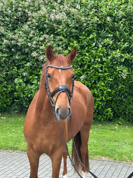 For Sale We are offering a beautiful, well-broken German Riding Pony gelding, registered in the Weser-Ems studbook, born in 2021, making him a 4-year-old. He captivates with his exceptional pedigree, which leaves nothing to be desired, as well as his friendly nature and elegant appearance. With a height of 157 cm, he is ideal for ambitious riders seeking a reliable partner horse. His sire, Celebration WE, was highly successful and a multiple winner in dressage competitions at the S level under Tanja Fischer. Unfortunately, he passed away unexpectedly last year at the age of 16. His grandsire, Relevant, also passed away in 2017 at the age of 26. Relevant was very successful in Grand Prix with rider Lisa Wilcox, achieving results over 82%, including at the World Equestrian Games in Jerez. His rider particularly praised his sensitivity and high rideability, qualities he has clearly passed on to his offspring. Genetically, this is a true rarity with great potential, one that should be secured now, as such an opportunity may not come again. He was lovingly raised by us and only recently, at just over 4 years old, was gently started under saddle by a professional rider to give him time to mature. Until then, he enjoyed carefree childhood and youth on our large pastures with his friends. He is still developing but already shows a lot of joy in work. He makes good jumps when free jumping and clearly enjoys it. He has also jumped smaller fences and cavaletti under saddle. In handling, he is initially a bit shy and reserved but quickly bonds once he gains trust. His very pleasant and friendly nature makes him strongly attached to his handler. With other horses in the herd, he is very confident and always avoids trouble without being submissive. The chestnut has been under saddle for about three months and shows great talent and willingness to develop further. His agreeable nature makes him suitable for slightly smaller, experienced riders as well as ambitious young riders. He is not a weight carrier! We wish for him a home that appreciates his unique character and talent and where he can stay. No dealers, please. X-rays have been taken and show no findings! For inquiries or further information, I am happy to be available by phone at 0171/5874944. A trial ride is possible by arrangement, but we charge a fee, which will be credited towards the purchase price, to prevent riding tourism and to protect the horse.
