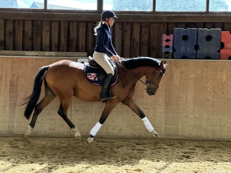 Don Idefix è un pony espressivo con 3 ottimi GGA. Salta un piccolo percorso con coraggio e mostra la sua qualità al salto. Già a 4 anni rende felici anche i giovani cavalieri come pony per bambini. Con il suo carattere semplice e la voglia di imparare, porta molta gioia in ogni sessione di lavoro. Cerchiamo per lui un/a cavaliere/a ambizioso/a che lo supporti con fiducia e con cui possa crescere bene nello sport. È particolarmente adatto anche per i giovani atleti che vengono accompagnati durante l'allenamento e la formazione.