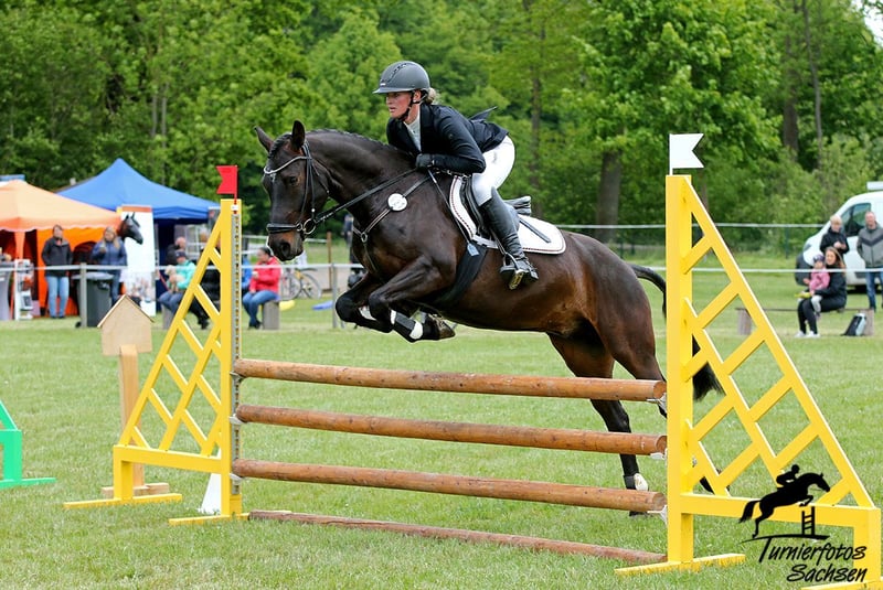 Gin Tonic si distingue per il suo fascino assoluto, la sua voglia di lavorare e le ottime qualità per il salto ostacoli e il concorso completo. Addestrato delicatamente a 4 anni, ha subito ottenuto ottimi risultati nelle prove di dressage e di cavalli da lavoro. Possiede un passo molto ampio, un trotto fluido e un galoppo di grande statura, ben equilibrato. Da quest'anno ha potuto sviluppare ulteriormente il suo talento nel salto. Fin dall'inizio ha impressionato per la sua chiarezza mentale, il galoppo ritmico e la sua ottima maneggevolezza. Ha vinto prove di salto ostacoli e di cross country A** con punteggi fino a 8,7, contro cavalli di grossa taglia. A giugno è stato nominato campione regionale dei pony da cross di 5 e 6 anni di Sassonia-Thüringen. Inoltre, a luglio ha conquistato il titolo di DSP-Champion dei pony da cross. Infine, si è qualificato per il Bundeschampionat a Warendorf. Gin Tonic si presenta sempre coraggioso e dal carattere forte. Durante l'allenamento con i giovani cavalieri, ha trasmesso un senso di sicurezza. Affronta il terreno con affidabilità e calma sia da solo che in gruppo. Viene tenuto in paddock aperto con una mandria mista, è socievole e giocoso, ma sempre amichevole. Durante l'inverno, corre senza ferrature, mentre durante la stagione delle gare indossa le ferrature. È regolarmente vaccinato, dewormed e sottoposto a cura dentale. Non si tratta di una vendita urgente. Gin Tonic viene affidato esclusivamente a una famiglia con standard di eccellenza. Per ulteriori informazioni, non esitate a contattarci al numero 0174 2116959.