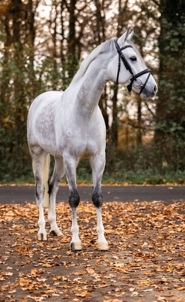 7-year-old grey gelding | self-bred and trained | Show jumping pony with heart and quality Some ponies stay forever in your heart – DOUBLE TROUBLE is definitely one of them. A 7-year-old grey gelding who impresses with his quality, talent, and positive attitude. A pony that shines in the show jumping arena with strength, composure, and absolute willingness to perform, while always remaining soft to ride and fully attentive to his rider. DOUBLE TROUBLE was bred and lovingly brought up by us, and has been carefully developed into the sport. His sporting achievements speak for themselves: > Finalist at the 2023 German Championships > 4th place in the final of the 2024 HKM German Championships (6-year-old show jumping ponies) > Winner of the Grand Prix 125 cm CSIP in Hagen a.T.W. & participant at the German Championships In addition, he boasts numerous wins and placings in L-level jumping competitions, as well as victories in M-class show jumping tests – a pony that has already achieved impressive milestones and still holds great potential for the future. What truly makes him special, however, is his character: well-behaved, affectionate, loving, always attentive, and consistently striving to give his rider a good feeling. A pony that is both sportily ambitious and an absolute sweetheart in everyday handling. For this exceptional gelding, we are looking for a home where he can continue to be supported and cherished with heart and appreciation. A place where he can showcase his qualities further and find the people who love him just as much as we do. DOUBLE TROUBLE embodies everything one wishes for in a modern show jumping pony.