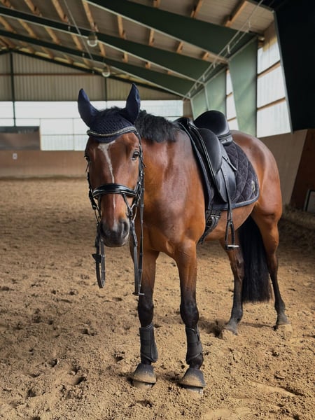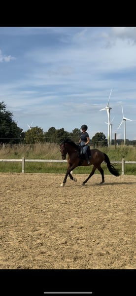We are offering a charming overheight pony for sale. Year of Birth: 2019 Gender: Gelding Height: approximately 15.8 hh Breed: German Riding Pony Sire: Steendieks Cantuccini This handsome gelding impresses not only with his friendly appearance but, above all, with his lovable character. He is very people-oriented, enjoys every bit of attention, and is always attentive and cooperative with his rider. He is completely uncomplicated in handling. Under saddle, he is easy to ride, well-behaved, and mentally clear. In dressage, he has already competed in A-level dressage tests and is currently being prepared for class L. He also shows plenty of motivation and joy in jumping. When hacking out, he is gentle, calm, and reliable. TÜV images are available from November 2023, and a new TÜV can be arranged at any time. He has been regularly vaccinated, dewormed, and his teeth have been checked annually. There is the possibility of a swap for a dressage horse (aged 6 to 14 years; at least 1.65 m tall; smaller if well-covered). The pony is very mentally sound and fearless, so we would appreciate the same in a swap partner. Feel free to contact us via WhatsApp.