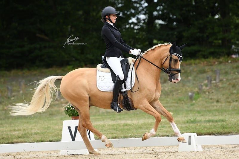 With a heavy heart, we are seeking a new home for our beautiful pony gelding. Daily Gold has been with us since he was three years old. Our daughter was 12 at the time and has achieved numerous wins and placings with him, from dressage training level to L** dressage. Last year, they competed in their first Pony FEI event and were immediately placed! He also reliably carries smaller children through competitions. At 8 years old, he is in the prime age to introduce a child to competitive riding and to continue developing further. Daily knows everything a pony should and is always up for fun! We must admit that our daughter has simply outgrown him, and he is still too young to stop being ridden, so we are now searching for a wonderful new home for him. When we purchased him, he was fully vetted and in perfect health. The current health certificate is available. He has always been healthy with us. He measures 148 cm and is correctly registered as a pony in his passport. A suitable dressage saddle in size S and all accessories can also be purchased.