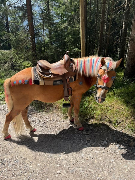 Manche Pferde haben einfach diese besondere Ausstrahlung, ruhig, geduldig und mit einem großen Herz für Menschen So einer ist Bilbo. Über Bilbo: ➡️ 9 Jahre jung und vermutlich ein Isländermix (mit Haflinger, Reitpony?) Im Pass ist er als Reitpony eingetragen. ➡️Im Umgang ist er ein absoluter Schatz und liebt Kinder, genießt jede Kuscheleinheit und ist einfach glücklich wenn er Teil des Teams sein darf. Sein Können: ✅️ Geht brav alle 3 Grundgangarten ✅️ wird regelmäßig mit seinen Reitbeteiligungen im Reitunterricht gefördert ✅️ super brav im Gelände, eine absolute Lebensversicherung ✅️ zeigt viel freude an der Arbeitund lernt mit Begeisterung Er wurde bei uns hauptsächlich als Hippolini-Kinderpferd eingedetzt und kennt daher den Umgang mit Kindern und wurde von Kindern geführt sowie von Fortgeschrittenen Reitern geritten. Dabei war er immer absolut zuverlässig. Daher könnte ich mir ihn auch als Therapiepferd vorstellen. Gesundheit und Haltung: 🌱 Bilbo hat schwächere Kniebänder, mit regelmäßigen Training ist das aber völlig unproblematisch 🌱 er ist leichter Exzemer, was wir aber mit der Fütterung total gut in den Griff bekommen haben und keine weiteren Behandlungen nötig waren. Auch keine Decke 🌱in seiner kleinen Herde von insegsamt 3 Ponys sorgt er mit seiner ruhe für Harmonie. Ist aber auch nicht der Rangniedrigste Wunschplatz: Wir wünschen uns für Bilbo ein Zuhause, in dem er weiterhin eine Aufgabe hat, gefördert wird und so geliebt wird, wie er es verdient. Perfekt wäre er für: 💚 Hippolini-Reitschulen 💚 als Therapiepferd 💚 oder für eine Familie, die sich ein zuverlässuges Freizeitpferd wünscht Sehr gerne darf er bei uns am Hof als Einstellpferd bleiben und seine Reitbeteiligung könnte übernommen werden die regelmäßig den Unterricht besucht. Bei Interresse gerne eine Whatsapp unter 06764249280. Wir stellen ihn gerne persönluch vor und erzählen mehr von seinem Leben. Wir verkaufen ihn nur aufgrund der Aufgabe der Hippolini-Kinderreitschule.