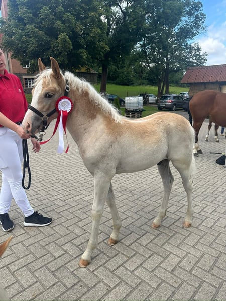 Dieser hübsche Edelbluthaflingerhengst sucht ein neues Zuhause. Er kennt das Fohlen ABC, durfte seinen ersten Sommer mit seiner Mutter und seiner Vollschwester auf der Wiese verbringen und ist nun bereit für sein erstes Abenteuer. Er ist ein charmanter, aufgeweckter Kerl mit viel Energie. Er bringt viel Potenzial für die Dressur, aber auch für Springprüfungen mit. Mutter: Melina v. Nebos I (Dressur bis Kl.M / Springen bis Kl. A) Vater: Pr.H Amani v. Apiko (Dressur bis Kl.S*** / Springen und VS bis Kl.A) Bei Interesse können gerne Videos zugesendet werden.