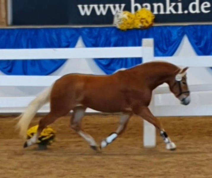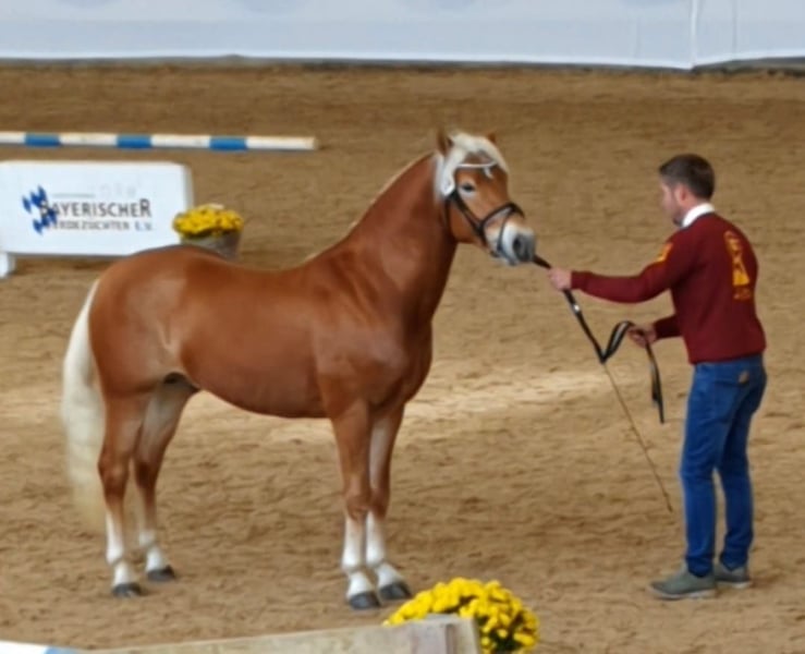 Typvoller, sportlicher Edelbluthaflingerhengst, freundlich im Umgang, kennt Hänger, freispringen, longieren und den täglichen Umgang. Er ist kein Anfängerpferd mit viel Go und braucht seinen Menschen der klare Ansagen macht. Er ist mit einem anderen Junghengst aufgewachsen, im Sommer auf der Weide im Winter mit täglichen Koppelgang.