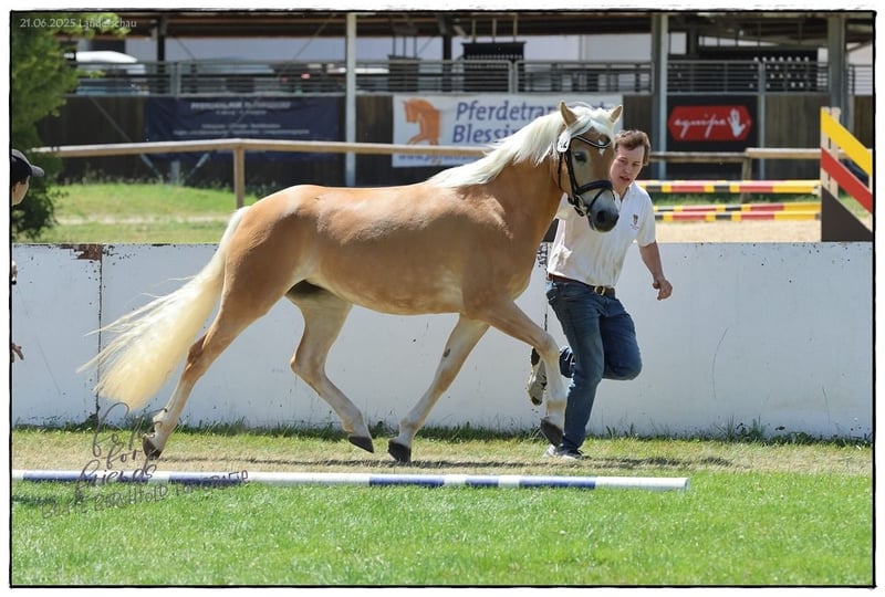 Vater Akitano, Mutter Staatsprämienstute Asterl von Sonnenkönig C. Geb. 22.04.2022; Größe ca. 148 cm. Alina ist eine bildhübsche, ansprechende, sympathische, Edelbluthaflingerstute. Sie wurde mit der Wertnote 7,4 in das Hauptstutbuch eingetragen und prämiert. Alina ist altersentsprechend gefördert, mit Sattel longiert und zeigt sich als unkompliziertes, leicht händelbares Reit- und Familienpferd. Sie verfügt über drei sehr gute GGA, glänzt mit ihrem freundlichen, unkomplizierten grundehrlichen, dem Menschen zugewandten tollen Charakter und ausgeglichenem Temperament. Sie gibt einem ein gutes, sicheres Gefühl und ist im Umgang ein Schatz. Sie ist das perfekte vielseitige Familienpferd für Freizeit, Sport und Zucht. Alina ist Schmiede und Verladefromm, Laufstall- wie auch Boxenhaltung mit Paddock gewöhnt, mit anderen Pferden gut verträglich und unkompliziert. Ihre Mutter die SP und Bundesprämienstute „Asterl“ zeigt ihre Qualität in der Zucht, unter dem Reiter und im Gespann. Aufgrund von Zeitmangel und vorhandenen Nachzucht des Mutterstamms (kann mit besichtigt werden) suchen wir für Alina ein neues liebevolles Zuhause in dem sie neue Aufgaben und die richtige Aufmerksamkeit bekommt.