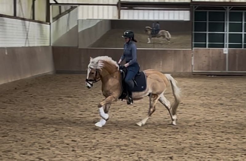 Name: Novales Rasse: Edelbluthaflinger Geschlecht: Wallach Alter: 10 Jahre Stockmaß: 1,52 m Disziplin: Dressur / Springen / Freizeit / Gelände / Fahren Novales ist ein sympathischer und ehrlicher Edelbluthaflinger mit einwandfreiem Charakter. Er zeigt sich unerschrocken, ausgeglichen und nervenstark – ein echter Partner mit Herz und Verstand. Er wurde in den letzten Jahren dressurmäßig ausgebildet und erfolgreich auf Turnieren vorgestellt. Siegreich und platziert in A* und A** - Beherrscht Lektionen der Klasse L, wurde dort bislang jedoch nicht vorgestellt - Geht allein wie auch in der Gruppe sicher ins Gelände, stets gelassen und aufmerksam - Wird regelmäßig gesprungen, zeigt dabei Freude und einen schönen, runden Sprung Novales ist außerdem eingefahren (Ein- und Zweispänner) – diese Disziplin wurde in den letzten Jahren allerdings nicht weiter gefördert. Er besitzt einen stabilen Charakter, ist aber kein Selbstläufer: Wer ihn überzeugt, hat ein zuverlässiges, vielseitiges und motiviertes Pferd an seiner Seite. Daher ist er kein klassisches Kinderpony. Gesundheitlich wurde er bisher top versorgt: regelmäßig tierärztlich, osteopathisch und zahnärztlich betreut, außerdem termingerecht beim Hufschmied vorgestellt. Er wird mit zwei Maßsätteln (Dressur & Vielseitigkeit) gearbeitet. Im Umgang ist Novales schmied- und verladefromm, steht tagsüber in einer gemischten Herde und kommt am Nachmittag in seine Box. Ich gebe ihn nur in allerbeste Hände und nicht aus Zeitmangel oder Not, sondern aufgrund eines Umstiegs auf ein Großpferd ab. Besichtigung & Probereiten: Um Reittourismus zu vermeiden, erhebe ich eine Gebühr von 30 €, die selbstverständlich beim Kauf angerechnet wird. Bitte nur bei ernsthaftem Interesse melden – kein Notverkauf! Da ich für Novales das perfekte neue Zuhause suchen gilt Platz vor Preis.