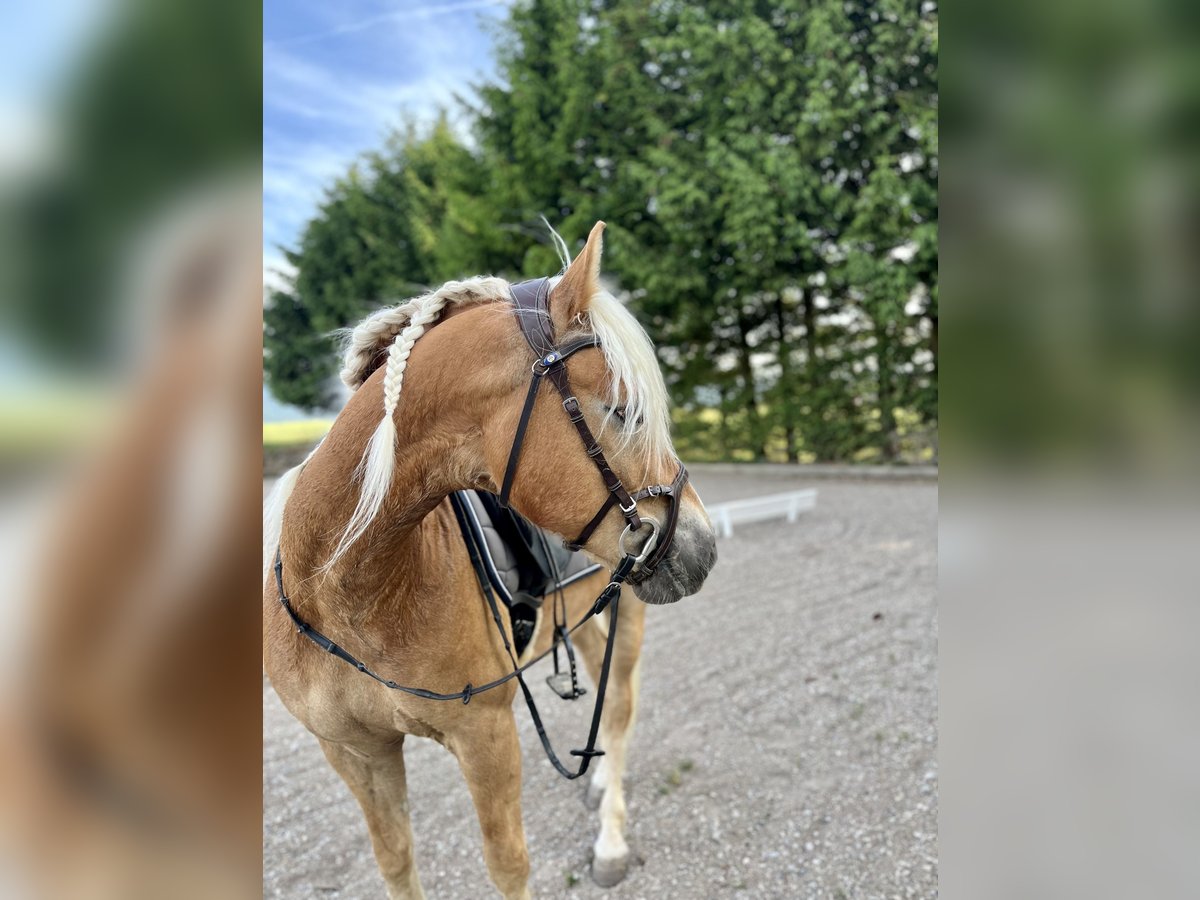 Nakaro ist ein typvoller, ausdrucksstarker Edelbluthaflinger Wallach, welcher Sportlichkeit, Schönheit und Charakter auf ideale Weise kombiniert. Er wird rein aus Zeitgründen verkauft und nur an einen guten Platz abgegeben. Nakaro ist seit 2019 in meinem Besitz, wir haben viele schöne Momente zusammen erleben dürfen. Er wuchs artgerecht im Herdenverband auf, kennt sowohl Offenstall / Aktivstall als auch Boxenstall (mit tägl. Paddock-/Koppelgang). Er ist schmiede- & verladefromm, sowieso regelmäßig geimpft und entwurmt. 2019 wurde er 2. Reserve bei der Edelbluthaflinger Trophy in Moritzburg der 3-jährigen. Er hat viel Spaß und zeigt Ehrgeiz bei der Dressurarbeit. Auch auf der Geländestrecke waren wir schon, nahmen auch immer wieder mal an Springunterricht teil, was er alles toll meisterte. Im Gelände macht er viel Spaß! Wenn man ihm Sicherheit gibt kann man auch gut alleine ausreiten gehen. In der Gruppe geht er sicher vorne weg. Aufgrund seines Temperaments eignet er sich nicht als Anfängerpferd oder Kinderpony. Für weitere Infos gerne melden.