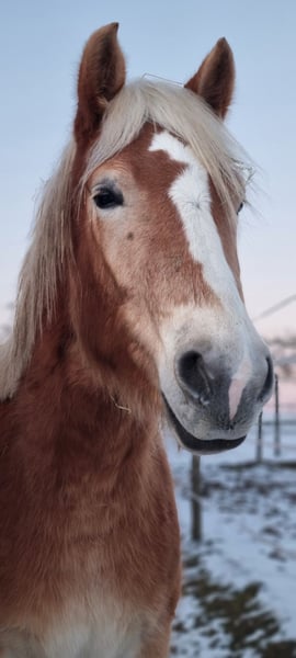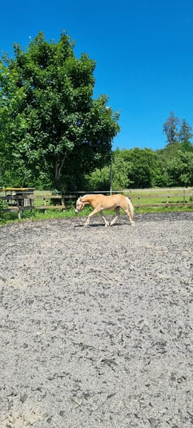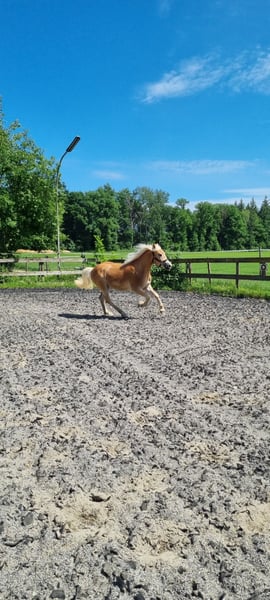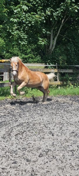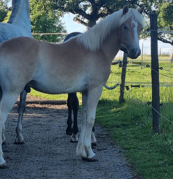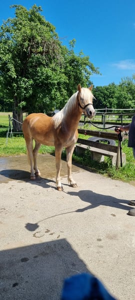 Zum Verkauf steht unser schicker, bewegungsstarker Edelbluthaflinger-Wallach. Als Fohlen Reservesieger auf der Fohlenchampionat. Er beherrscht das Fohlen ABC, ist sehr menschenbezogen, temperamentvoll aber sehr anständig im Umgang, beim Schmied, TA und beim Verladen. Ist unter besten Bedingungen aufgewachsen. Wegen einer Hauterkrankung (näheres gern persönlich), weit unter Wert gern in jungpferdeerfahrene Hände abzugeben.