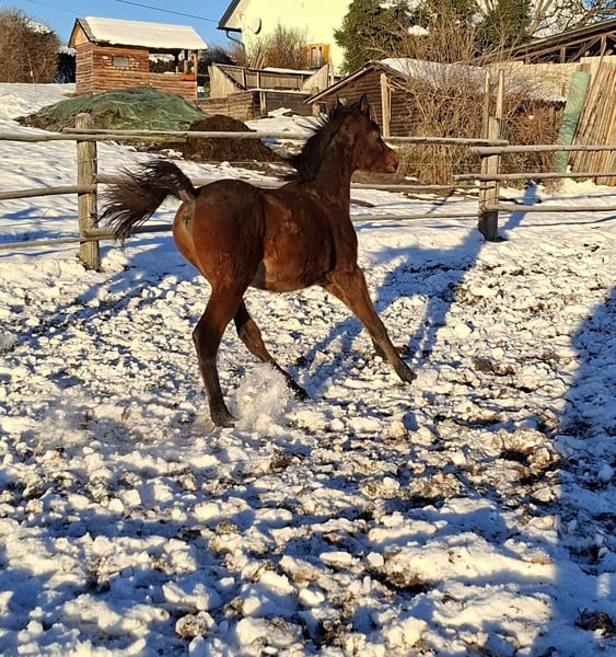 **Sale Listing: Egyptian Arabian Stallion** Available is a promising Egyptian Arabian stallion, born in 2025. This elegant bay impresses with his graceful appearance. With his high energy level and stamina, he is the ideal partner for ambitious riders who enjoy the challenge of endurance riding. His pedigree includes the performance stallion Kasr el Nil.