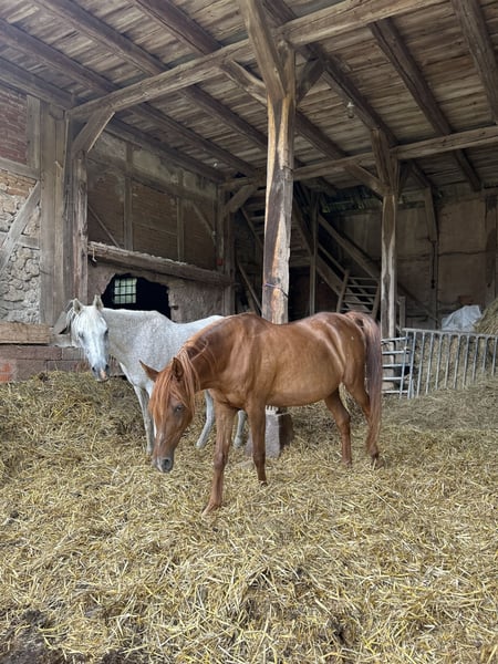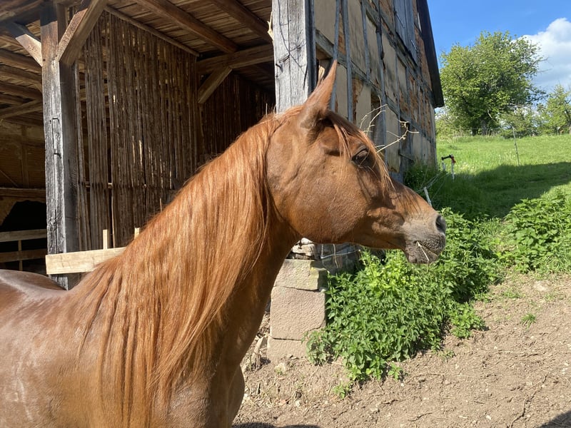 El Gamad Saraje ist eine wunderschöne im originalen alten Weil Marbacher Wüstentyp stehend! Da ich leider derzeit keine Möglichkeit habe mit ihr weiter zu züchten, wäre es eine Sünde dieses Blut mit dem tollen Potenzial was diese zauberhafte Stute in sich trägt brach liegen zu lassen. Reiterlich ist sie butterweich zu reiten mit dem wunderschönen Go was wir Arabermenschen lieben. Trittsicher und cool geht sie mit ihrem Menschen überall hin. Als Mama verteidigt sie ihre Fohlen ohne übertrieben zu sein. Ihr Exterieur und Interieur suchen in der heutigen Zeit ihresgleichen. Ihren sanften und coolen Charakter mit allem was es braucht, gibt sie an ihre Kinder weiter. Bei der Wahl des richtigen Hengstes kann ich gerne behilflich sein! Ich bin Züchterin aus tiefstem Herzen und deshalb möchte ich einen absoluten Traumplatz! Weitere Infos gerne nach Kontaktaufnahme! Auf den Fotos sieht wir den wunderschönen Schimmel Hadban Enzahi, den Rappen Gharib und den Rappen El Aswad .