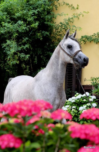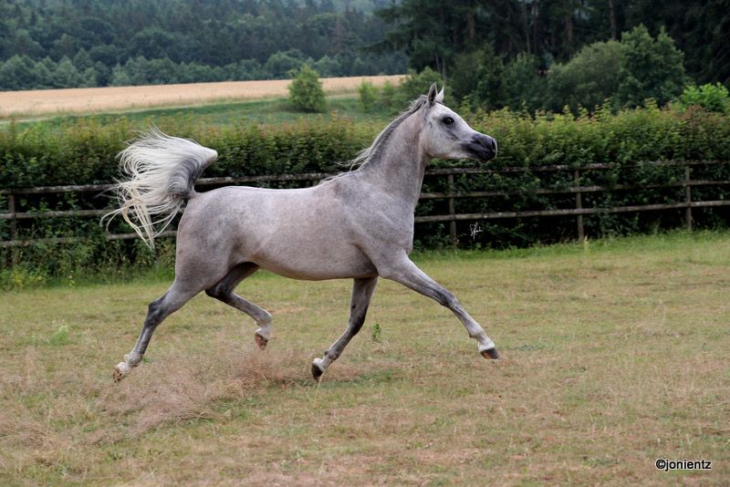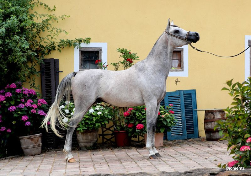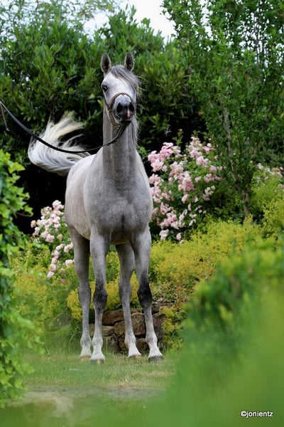 Abidan El Mujid is an exotically beautiful gelding with an excellent pedigree. He has a great conformation and foundation, as well as top movements, and is available for sport and/or leisure! He is very people-oriented, curious, willing to learn, and has already shown great potential during his initial training to develop into a reliable companion. He lives in a herd environment, is educated according to his age, and has been started in the basic gaits. If you are looking for a loyal and graceful companion who will stand by you through thick and thin, then Adam is the right one for you! If you are interested, we look forward to your contact to share more information and arrange a viewing appointment. www.goschenhof-arabians.de