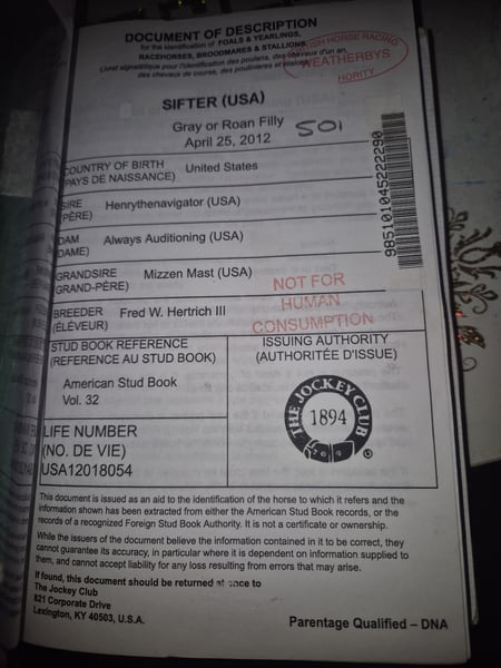 Sifter eine liebe Seele sucht ein zu Hause bei lieben Menschen. Sifter ist eine Stute mit Temperament, dennoch ausgeglichen und niemals böse. Sifter war in den USA auf der Rennbahn. Sie hatte bis vor kurzem ein Fohlen am Fuss. Jetzt wird sie wieder angeschoben. Vor ihrem Fohlen, ist sie auf Turniere Springen A gelaufen. Sifter ist eine Englische Vollblutstute. Ihr Vater : Henrythenavigator ( USA) Ihre Mutter : Always Auditioning ( USA) Sifter hat volle Papiere und ist im Zuchtbuch eingetragen. Sie kann auch für die Zucht eingesetzt werden. Sie ist eine liebevolle und einfühlsame Mutter. Sifter kenn die Box, zurzeit steht sie im Offenstall in einer gemischten Herde.