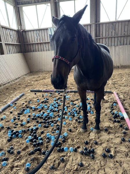 With a heavy heart, I am seeking a new home for my 14-year-old, approximately 16.1 hh Thoroughbred mare, "You'll Never Run Alone" (called Quenny). Due to personal circumstances (starting a family) and the resulting lack of time, I can no longer give her the attention she deserves. Quenny is experienced both under saddle and on the ground. In daily handling, she is well-behaved and confident. She handles desensitization exercises calmly and unphased. She is very human-oriented, though she prefers a small number of stable, trusted handlers. Frequent change of riders can unsettle her, so she may test her boundaries initially. Therefore, I am looking for a person who is empathetic, experienced, and calm to provide her with the security she needs. Quenny is not suitable for beginners or insecure riders. Due to time constraints, Quenny is currently mostly worked from the ground. Therefore, her training should initially focus on a healthy, varied fitness program to facilitate her reintegration into full work. With thoughtful promotion, her riding potential can certainly be further developed. She is generally accustomed to hacking out in open terrain. She is curious and interested in her surroundings and always manageable on the lead. However, due to my limited time, she currently lacks some routine during rides. With a confident rider and more experience, she will become a lovely leisure partner. The mare is shoe- and loading-safe and currently barefoot. For very rocky paths, she wears front hoof boots. She has been regularly vaccinated and dewormed. Dental checks are performed annually as standard. In interactions with other horses, she is consistently open and socially compatible. She currently lives peacefully in a mixed herd with a gelding and four other mares. At night, she is housed in her own box; during the day, she enjoys paddock or pasture turnout. For the future, I wish for her to have a home where she can continue to enjoy plenty of turnout and social contact throughout the year. If Quenny has piqued your interest, I look forward to hearing from you. We can happily arrange a date for a personal meeting!