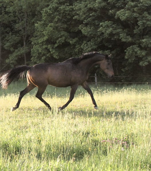 Schweren Herzens suche ich für meine 14-jährige, ca. 1,65m große Vollblutstute "You'll never run allone" (genannt Quenny) ein neues Zuhause. Aufgrund privater Umstände (Familiengründung) und den daraus resultierenden Zeitmangel kann ich ihr leider nicht mehr so gerecht werden, wie sie es verdient hat. Quenny kennt die Arbeit sowohl vom Sattel als auch vom Boden aus. Im alltäglichen Umgang zeigt sich die Stute brav und unerschrocken. Auch gezielte Gelassenheitsübungen meistert sie souverän und unbeeindruckt. Sie erweist sich als durchweg menschenbezogen, wobei sie eine kleine Anzahl fester Bezugspersonen bevorzugt. Häufig wechselnde Reiter verunsichern sie tendenziell, weshalb sie diese gerade zu Beginn gerne einmal austestet. Aus diesem Grund suche ich für sie eine Person, die einfühlsam, erfahren und ruhig ist, um ihr die nötige Sicherheit zu vermitteln. Quenny wird deshalb nicht an Anfänger oder unsichere Reiter abgegeben. Dem Zeitmangel geschuldet wird Quenny gegenwärtig überwiegend vom Boden aus gearbeitet. Entsprechend sollte der Schwerpunkt zunächst auf einem gesunden und abwechslungsreichen Aufbautraining liegen, um der Stute den Wiedereinstieg in das volle Arbeitsleben zu erleichtern. Mit entsprechend durchdachter Förderung kann ihr reiterliches Potenzial daher definitiv noch weiter ausgeschöpft werden. Grundsätzlich kennt sie Ausritte in weitläufiges Gelände. Dabei zeigt sie sich neugierig und interessiert an ihrer Umgebung und ist jederzeit händelbar. Aufgrund des Zeitmangels meinerseits fehlt ihr bei Ausritten aktuell allerdings etwas die Routine. Mit der nötigen Sicherheit durch den Reiter und mehr Erfahrung wird sie hier ebenfalls eine nette Freizeitpartnerin werden. Die Stute ist schmiede- und verladefromm und läuft aktuell barhuf. Für sehr steinige Wege besitzt sie Hufschuhe für die Vorderhufe. Zudem wurde sie regelmäßig geimpft und entwurmt. Auch Zahnkontrollen fanden standardmäßig einmal im Jahr statt. Im Umgang mit anderen Pferden zeigt sich die Stute durchweg aufgeschlossen und sozial verträglich. Derzeit steht sie ohne Probleme in einer gemischten Herde mit einem Wallach und vier weiteren Stuten. Über Nacht kommt Quenny in eine eigene Box, tagsüber genießt sie Paddock- bzw. Weidehaltung. Für die Zukunft wünsche ich mir ein Zuhause für sie, in dem sie das ganze Jahr über weiterhin viel Auslauf sowie Sozialkontakt hat. Wenn es Quenny geschafft hat, dein Interesse zu wecken, freuen wir uns über eine Nachricht von dir. Gerne können wir dann einen Termin für ein persönliches Kennenlernen ausmachen!