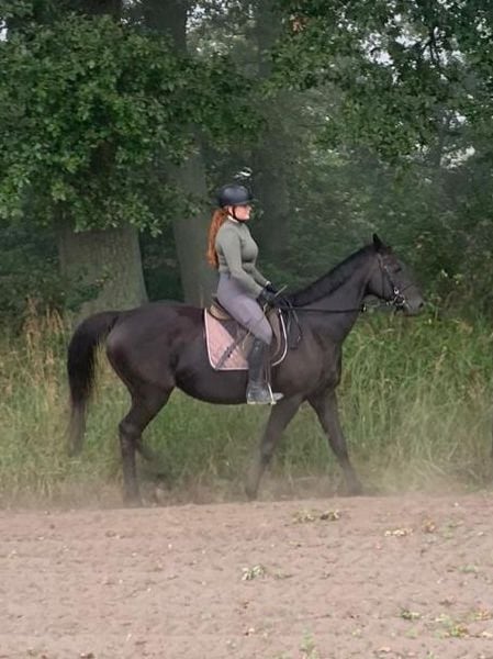 Lara Croft ist eine schwarze Vollblutstute. Sie hatte drei Fohlen und ist jetzt nicht mehr gedeckt worden. Sie ist eine völlig unerschrockene brave Stute. Auf dem Plstz und im Gelände zuverlässig. Im Umgang sehr menschenbezogen. Aufmerksam will sie immer alles richtig machen. Verladen ganz einfach alleine. LKW und Anhänger gewohnt. Gesund und frei von Allergien. Läuft barhufig. Sehr sozial in der Herde. Klebt nicht.