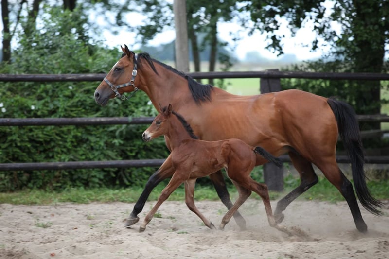 For sale due to downsizing: Sinless Kiss xx, 2004 born thoroughbred mare by Royal Dragon x Local Suitor out of the Schwarzgold xx family Registered broodmare of the Holsteiner Verband, thoroughbred line tb-16a. She inherits good movements, a great attitude, rideability and talent at the jump. Very experienced broodmare. She is compatible with the herd and very adaptable. She is well behaved. Her offspring have competed in eventing and other disciplines.