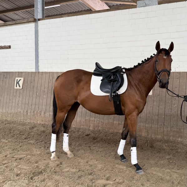 Diese 4 Jährige Vollblut Stute sucht ihr neues 5 Sterne Zuhause. Sie ist ca. 1,57m groß. Sie ist angeritten, aber noch sehr grün. Sie wird 1-2 mal die Woche geritten, also noch sehr unverbraucht. Sie muss aufjedenfall noch weiter ausgebildet werden. Dann wäre sie durchaus aus für Kinder geeignet da sie super Artig ist. Im Umgang ist sie Brav und gelassen. Sehr Artig unterm Sattel, Unarten wie Steigen ist ihr ein Fremdwort. Sie braucht eine Feste Bezugsperson und auch dieses Vertrauen dann. Sie ist ein echtes Herzenspferd was geliebt werden möchte. Videos können gerne per WhatsApp versendet werden. Bei näherem Interesse schreibt mir gerne eine PN Sattel, Trense, Decken und co können gerne gegen Aufpreis mit übernommen werden.