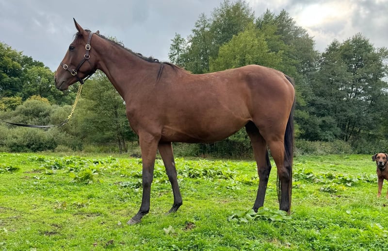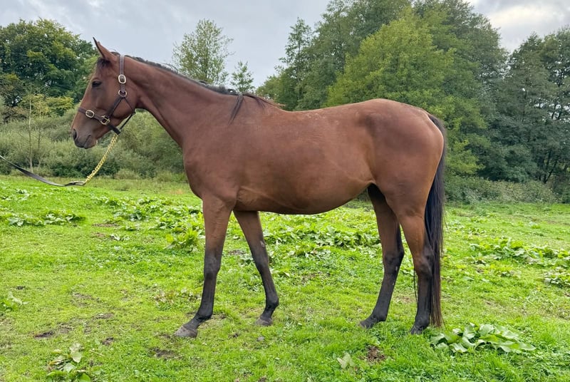 4-year-old, completely healthy Thoroughbred mare with an unusually good pedigree. A gem for breeding. Her father stands in Ireland and was the world's best racehorse in 2015 (Cristal Ocean covering fee € 8000). Her dam line is full of BT winners. The mare is completely healthy and lightly backed. She is suitable as a leisure horse or for breeding. No injuries, no allergies. Due to time constraints, she is available for a quick and decisive buyer.