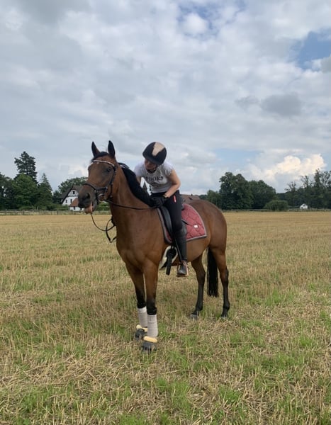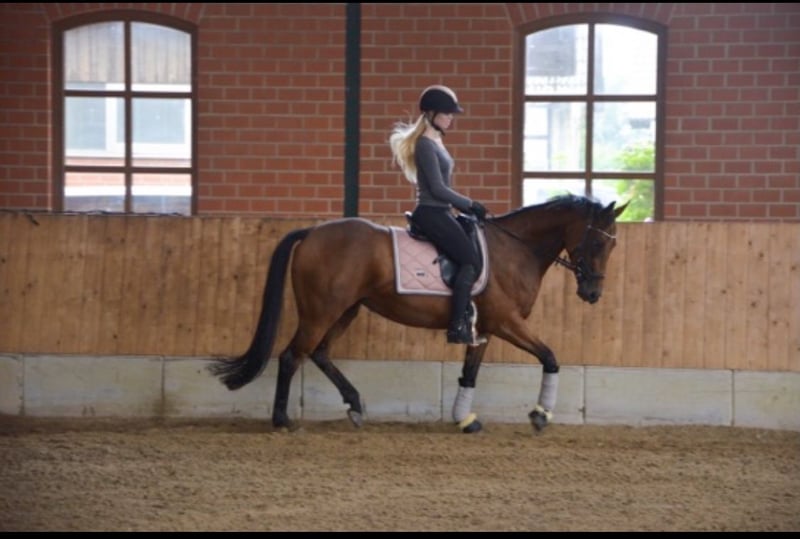 Schweren Herzens verkaufe ich meine 8-jährige Vollblut-Stute „Sterni“ (Stockmaß ca. 1,60 m). Ich besitze Sterni seit 5 Jahren, doch leider finden wir reiterlich nicht mehr richtig zusammen. Vom Boden aus ist Sterni sehr lieb und unkompliziert. Sie kann ohne Probleme von Kindern geputzt, geführt und longiert werden – dabei ist sie entspannt und gemütlich. Unter dem Sattel zeigt sie sich sensibel und kommt mit Druck schlecht zurecht. Sie ist daher absolut kein Anfänger- oder Kinderpferd. Beim Reiten kann sie in Stresssituationen „hochspringen“ (kein volles Steigen) oder auch mal losrennen. Zuletzt war sie 2 Wochen im Beritt und hat dort erneut gezeigt, dass sie Druck beim Reiten schlecht verarbeitet. Vor etwa einem Jahr war sie aufgrund meiner OPs bei einer anderen Bereiterin, dort lief es deutlich besser und sie zeigte sich arbeitswillig. Ausbildung: Sterni ist nicht sehr weit ausgebildet. Durch meine gesundheitlichen Probleme konnte ich sie nicht kontinuierlich fördern. Außerdem hatte sie eine längere Pause, da sie einmal „raus“ war – der Sattler hatte ihr einen Sattel mit gebrochenem Kopfeisen aufgelegt( wussten wir leider nicht) was dazu führt das sie danach am Rücken behandelt wurde und ihr eine Pause gegeben worden ist . Sie ist seitdem aber schmerzfrei seit Jahren im Rücken . Springen macht ihr sehr viel Spaß, sie wird dabei aber heiß. Aufgrund meiner Gesundheit wurde dieser Bereich kaum weiter gefördert. Ich wünsche mir für Sterni einen erfahrenen, ruhigen Menschen, der sie so nimmt, wie sie ist – ohne übermäßigen Druck, aber mit Konsequenz, Geduld und absoluter Gewaltfreiheit. Hat sie erst einmal Vertrauen gefasst, tut sie sehr viel für “ihren” Menschen. Sterni steht momentan in einer paddockbox und kommt über den Tag nach draußen , dort steht sie in einer stutenherde . Gesundheitliches: • Überbein am linken Vorderbein (könnte operativ entfernt werden). • Wirbelengstand, der keinerlei Symptome zeigt und regelmäßig kontrolliert wurde. Sterni wird nur in allerbeste Hände abgegeben. Reitvideos sind vorhanden . Probereiten ist möglich, jedoch übernehme ich dafür keine Verantwortung