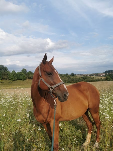 Hello everyone, with a heavy heart, I have to part with my 8-year-old mare Lotte. - Breed: Thoroughbred (with full pedigree, father raced) - Age: 8 years - Height: 1.62 m - Barefoot (She is regularly seen by the farrier and the veterinarian.) Lotte has a loving character and enjoys receiving attention. She likes to work with you, whether in the riding arena, in the field, or during groundwork. In the riding arena, she can be ridden well by teenagers, but in the field, she needs an experienced and confident rider. She is very eager to learn and has a good go. I bought Lotte in the spring of last year from a box stall situation. Since then, she has been in a paddock and unfortunately developed mud fever from standing outside in all weather (often on muddy ground). Since I do not have a stable with box stalls nearby, I am now looking for a new owner for Lotte who can provide this for her. The mud fever is under veterinary treatment and is improving, but the veterinarian sees no lasting healing under the current living conditions. She can be sold with suitable accessories upon request. Her English saddle was checked, adjusted, and re-padded this year. Home before price! Further photos and videos are available upon request. I am happy to answer any questions and look forward to meeting you.