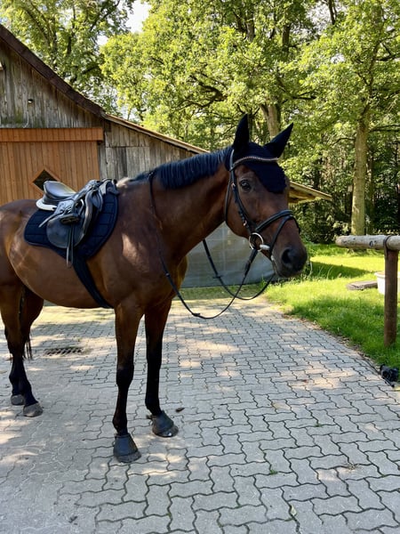 For sale is a wonderful 10-year-old Thoroughbred gelding with beautiful basic gaits and a lot of charm. Unfortunately, I have not had the time for a while, which is why Ecki has not been worked regularly for about a year. For this reason, I have made the difficult decision to let him go to loving and supportive hands. The most important details at a glance: Age: 10 years Training: Leisure horse with solid basic training Area of use: Leisure / Dressage / Jumping Special features: Beautiful basic gaits, shows joy in jumping, good for loading Current status: Not ridden for a year, needs to be brought back into work. Ecki has the best prerequisites - he now needs someone with experience, patience, and joy in working to be reintroduced to training. He learns very quickly and also enjoys groundwork. Home before price! Inquiries are welcome here via message or at 015254158045.