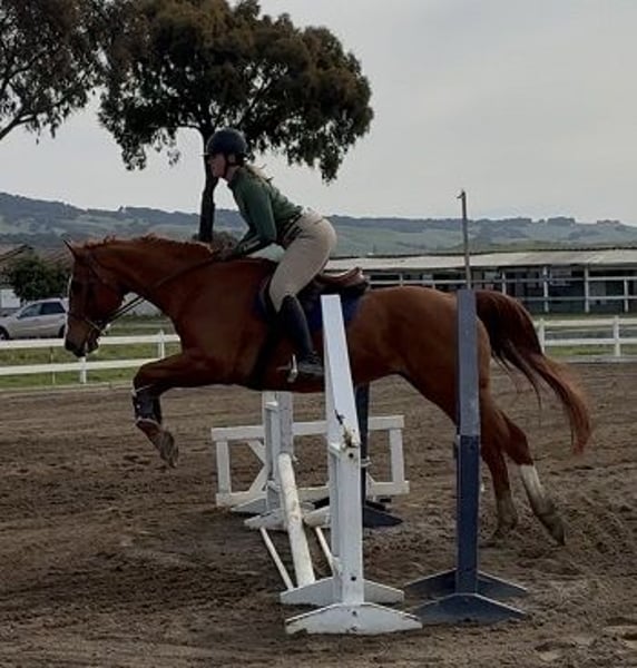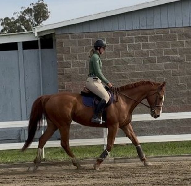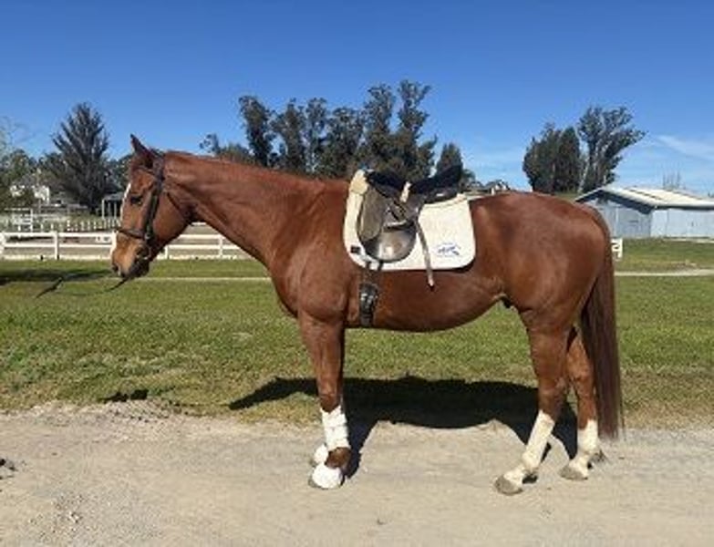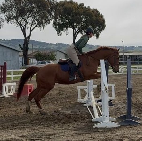 Attention Performance Thoroughbred enthusiasts! If you like the 'off the track' Jumping and Dressage horses, you will love this guy! Proudly Presented by, and in full training with- Clare and Clarity Performance Horses: "C J My Boy": 10 year old, 16.1hh, chestnut, Jockey Club Thoroughbred gelding As you can easily see, C J has an excellent conformation for the Performance Horse world. CJ is certainly the Warmblood-y type of Thoroughbred. He is extremely charming, sweet and personable. C J is enjoyable to be around and to spend time with. He is uncomplicated to work with on the ground and in hand. CJ is currently gaining weight and strength, as he is coming out of a 'holding pattern' after being part of a lesson program. C J has 3 very good gaits. He has wonderful inherent rhythm and balance. He has a big, sweeping walk; a nice, ground-covering trot; and a naturally uphill, 'rocking horse' canter. C J is 100% sound, sound, sound. He has a lot of bone; and big, beautiful feet. Clean legs; no history of health or injury issues. C J is shod in front and barefoot behind. He is educated under saddle and over fences. C J has coursed nicely 2'6"-2'9". He is more of an Equitation type of Jumper. He could also really excel and shine in the Eventing disciplines. Located at Clare's Training and Sale barn in Petaluma, Ca. Full description, including carrots, can be seen on the website: https://sites.google.com/site/clarityperformancehorsesales/free-rescue-re-home-horses