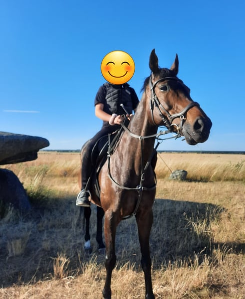 We are looking for a new home for our gelding. He is a 12-year-old dark bay gelding with three excellent basic gaits. He is comfortable riding alone or in a group, both in the arena and on outdoor rides. He is shoe-free and currently barefoot. He is kept in a mixed herd with an open stable system and 24/7 hay supply. He has been ridden recreationally by myself (37 years old) and my daughter (13 years old) both in the indoor arena and on trails. He is always well-behaved and manageable. He strives to please at all times and is eager to learn. Thanks to his friendly and charming nature, he is versatile and open-minded towards new challenges. We wish for him to find a new family that appreciates his kind and affectionate nature and will continue to support him. If interested or for further information, please feel free to contact me. Viewing and trial riding are possible by arrangement. He can be sold with complete tack if needed (saddle, bridle, blanket, etc.).