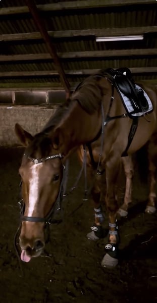Casamento, also called Casso, is a sweet and curious 6-year-old Irish Thoroughbred gelding with good potential for jumping. He has a kind temperament and enjoys working, especially when it comes to jumping. He previously started his education, but has been out of work for about a year due to the owner’s school and studies. During the same period he had a hind leg injury, which has been fully examined. X-rays and veterinary evaluation are available and show no remarks. Casso is broken in and introduced to jumping, where he shows great willingness and enthusiasm for the fences. There are X-rays of all four legs and the back with no remarks, and he passed a clinical veterinary examination in November 2025 without any findings. He has previously had gastric ulcers, but these have been treated, and a follow-up examination showed no remaining signs of ulcers. Due to the longer break from work, he can currently be shown on the lunge or under saddle at the walk. A sweet and curious horse with potential, looking for a rider who wants to continue his education and bring him back into work.