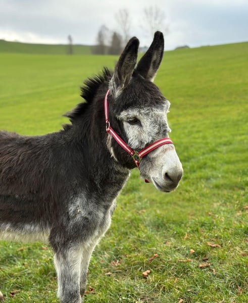 Eselhengst Hansi (15 Jahre) sucht ein liebevolles Zuhause Unser Eselhengst Hansi ist gerade 15 Jahre alt geworden und sucht auf diesem Weg ein neues, passendes Zuhause. Er ist ein sehr sozialer und freundlicher Esel, der sich problemlos mit anderen Eseln (Hengsten wie auch Wallachen) versteht. Auch der Kontakt zu Schafen und Ponys ist ihm bestens vertraut. Hansi ist brav im Umgang, geht ruhig am Strick, lässt sich gern putzen und gibt alle Hufe lieb. Zudem kennt er den Umgang mit Kindern und zeigt sich dabei ausgeglichen und zuverlässig. Wir wünschen uns für Hansi ein Zuhause mit Artgenossen und Menschen, die Freude an einem freundlichen, umgänglichen Esel haben.