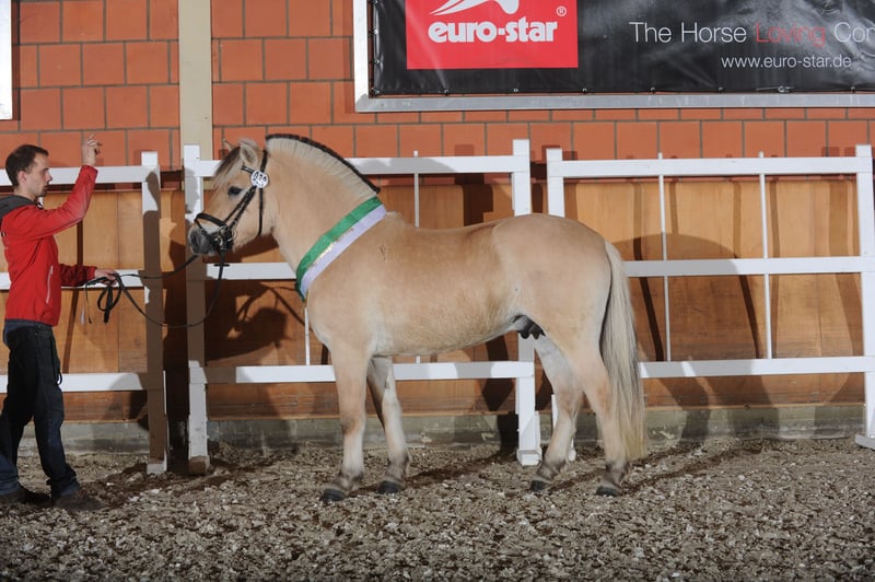 Directly from the breeder, this noble, promising, and performance-oriented premium stallion is offered for sale. Valerio LGKS was born in 2013 at our estate and grew up in a species-appropriate manner on our extensive meadows with other young stallions. In 2015, at the inspection for ponies, small horses, and special breeds at the Horse Center Schloss Wickrath, Valerio LGKS impressed in every way. He was the winner of his breed and received the title of premium stallion. In 2017, he successfully participated in the FN National Stallion Show of Fjord Horses in Berlin and was awarded the title of Vice Champion of the young stallions. In 2018, he became the champion stallion of the stallion performance test at Gestüt Rollehof in Erbach (30-day station test for stallions: driving, riding, cross-country) with an impressive final score of 8.50! This always performance-ready stallion is equipped with three very good basic gaits, making him suitable for dressage, show jumping, and driving sports. Valerio is also active in breeding as a breeding stallion. He passes on excellent genetic material, a pronounced willingness to perform, and good character to his offspring. We wish for Valerio LGKS a future where he can continue to showcase his qualities and successfully pass them on. If you are interested, we look forward to your message by email or a call at +49 (0)170 7739069.