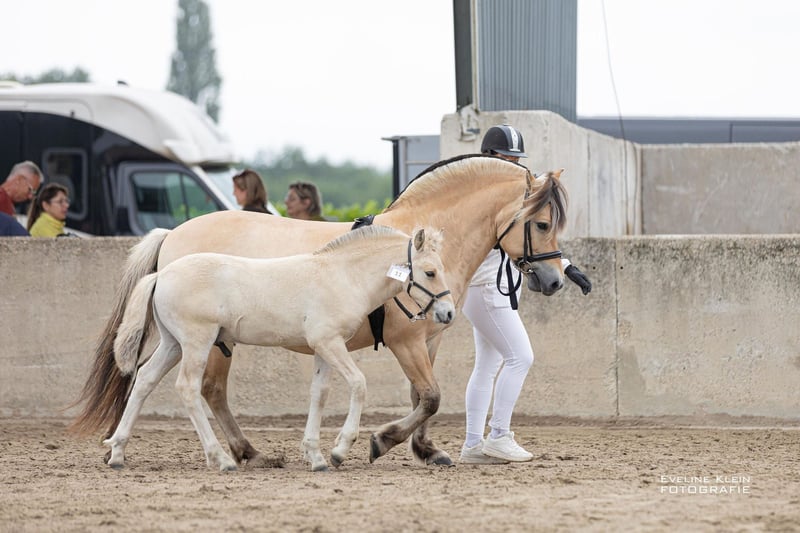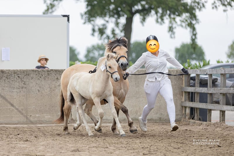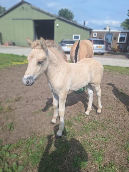 Beautiful colt foal born on June 15, 2025. His father is Lasko 'd Ober and his mother is Novalinda. At the inspection, he achieved a nice A premium. He is microchipped and registered in the Dutch Fjord Horse Studbook. Always trimmed on time, vaccinated, and dewormed. He is familiar with the trailer, stands well, and receives foal feed daily. He is growing up together with a filly. For pedigree; see document! He can move to a new home starting mid-November!