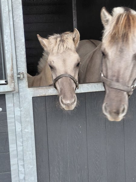 Wardrun was born on May 11th. Both his mother and father are, like him, gray in color. He is a descendant of the well-known sire King D'Ober, and his mother is Yolenthe van 't Vene (sire Drafur). He is bold but affectionate. He is accustomed to leading on a halter and to being tied up. Grooming and attention are something he loves. Traveling on a trailer is no problem for him. He grew up in a group, so he has good social skills. His movement is as smooth and expressive as that of his parents. Price: €2,500