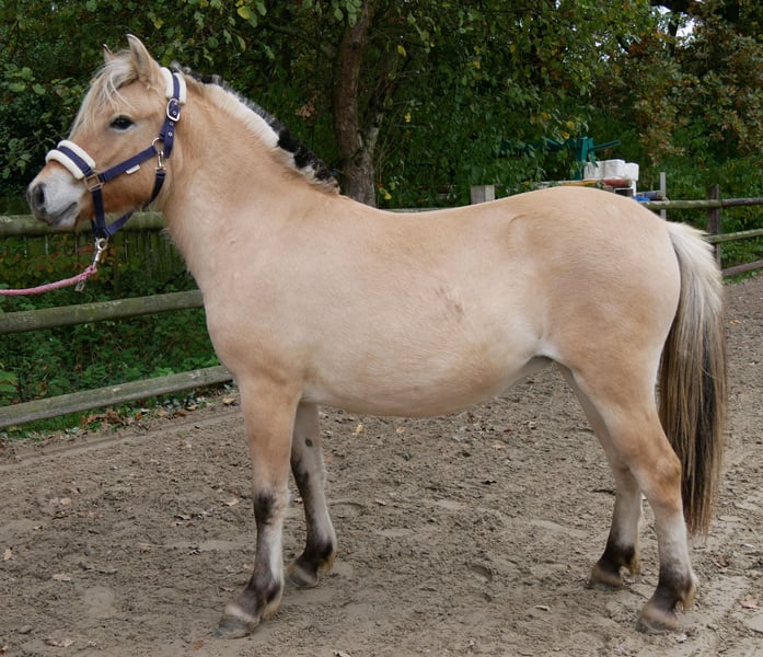 Name: Vara Van't Gors Geschlecht: Stute Alter: geb. 18.06.2024 Stockmaß: 125 cm Rasse: Norweger Abstammung: Lyckängs Tempo x Reinar Zum Verkauf steht diese wunderschöne, kleine Fjord Stute. Vara lebt zur Zeit mit 3 anderen Fjord Stuten im Herdenverband. Sie ist gesund, robust und kann auch in einen Offenstall ziehen. Bei Interesse melden Sie sich gerne unter der Nummer 0176 62495567 Gerne übernehmen wir auch kostengünstig den Transport ihres neuen Pferdes.